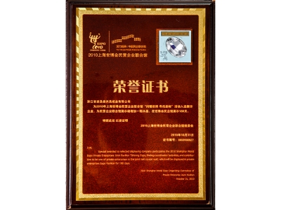Honorary Certificate of the 2010 Shanghai World Expo Private Enterprise Joint Pavilion